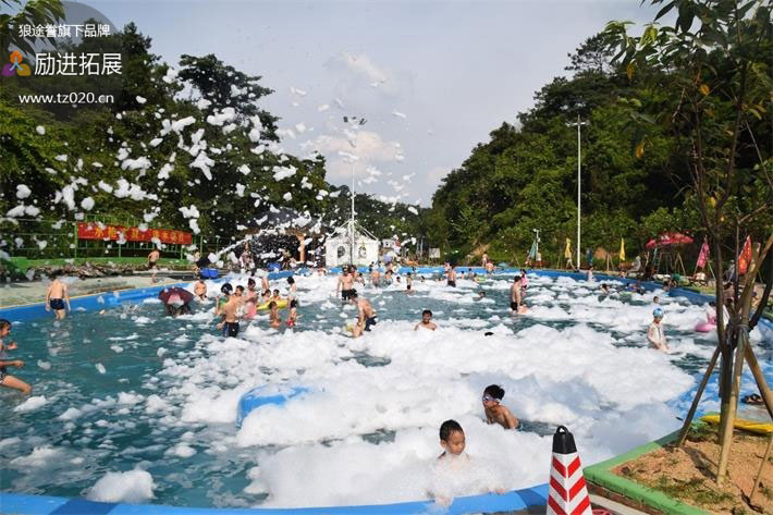 从天而降的泡沫,把活动推向了高潮,孩子们在泡沫海洋中尽情嬉戏。欢乐水上亲子