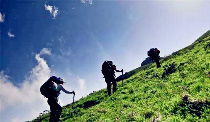 山野徒步的路况或是窄路挂壁,或是乱石横道,