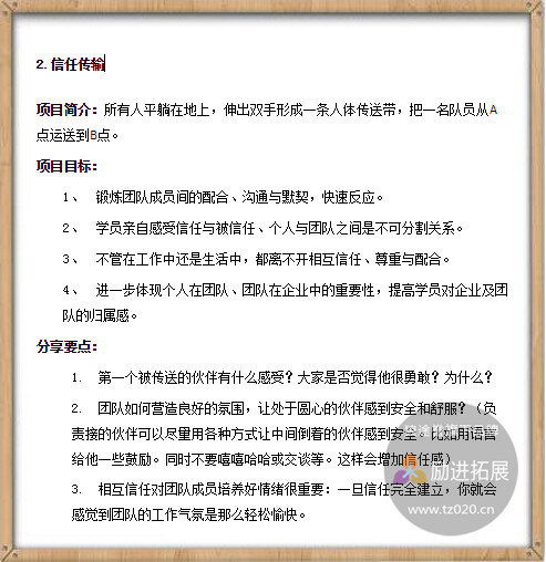 有很多拓展项目也可以看出一次的户外拓展活动的人数规定。比如以下的2个: