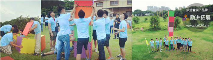 项目介绍:每队发给固定的地垫、绳索,集合大家的聪明才智搭建一座力所能及的最高的塔。而且还要保持地垫的完好,不许折叠、裁剪,看哪个队搭的最高。其意义是在有限资源的情况下,开拓思路,巧想办法,把任务完成地更好。在规定时间内看哪个队搭的层数最高。以层数计算各队成绩。